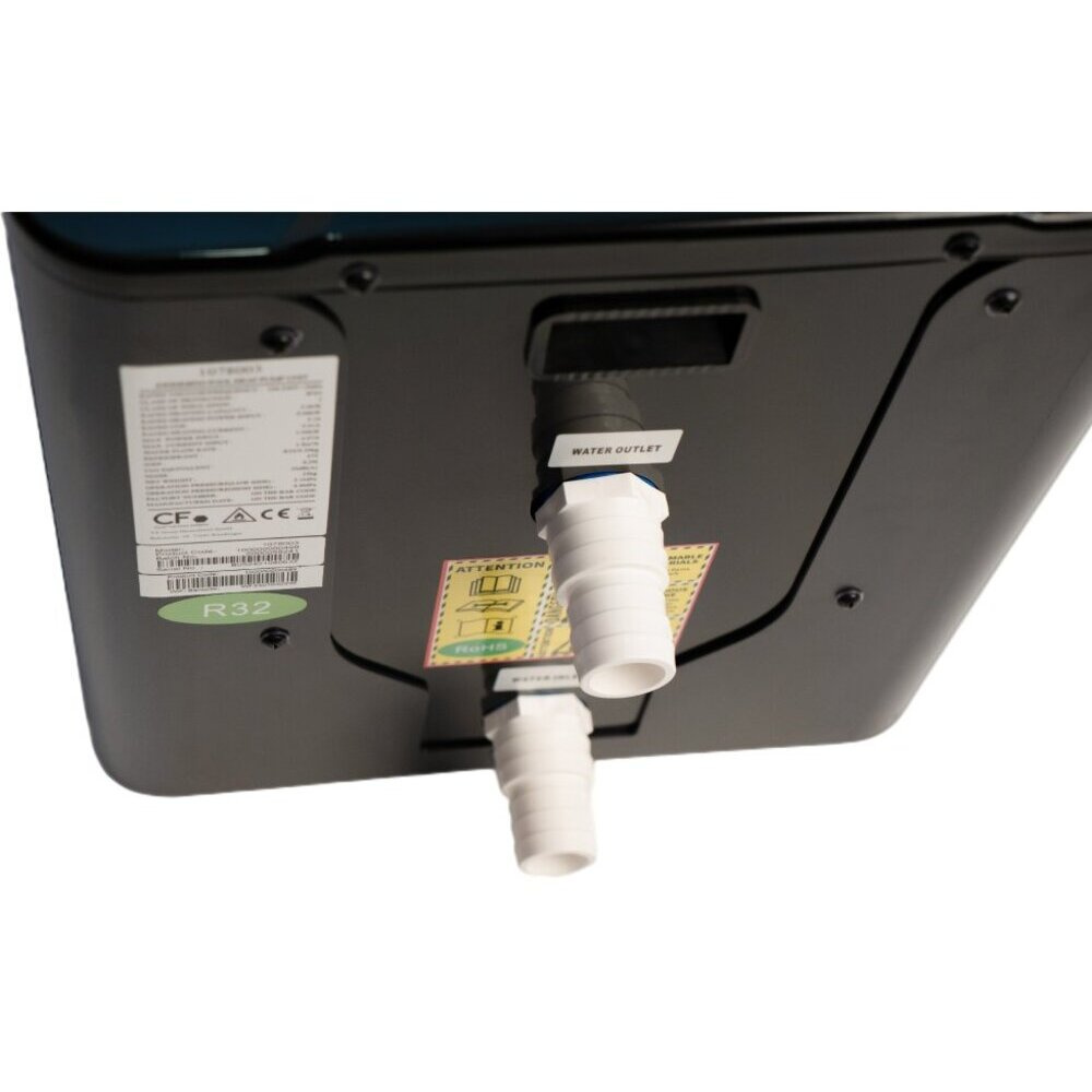 Pompa ciepła jest dostarczana w pełni zmontowana i gotowa do natychmiastowego podłączenia do węży basenowych ø38/32 mm. W zestawie znajdują się wszystkie niezbędne akcesoria, w tym złącza, gumowe nóżki tłumiące i zaciski do węży. Urządzenie działa w temperaturze otoczenia od 10 do 43°C i podgrzewa wodę w temperaturze od 15 do 40°C. Zalecane natężenie przepływu wody wynosi 1,8 m³/h, a zasilanie wymaga jednofazowego połączenia 220-240 V / 50 Hz. Urządzenie może być Używane zarówno do wody uzdatnionej chlorem, jak i zasolonej.