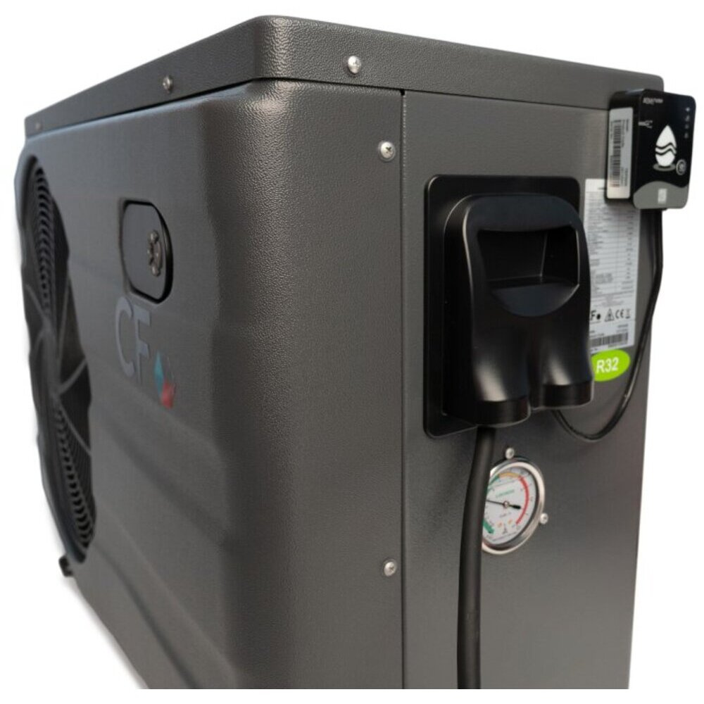 Z poziomem hałasu w zakresie 42-53 dB, CF City PROFI Invertor 12kW jest jedną z najcichszych pomp ciepła na rynku - poziom hałasu odpowiada szeptowi i konwencjonalnej lodówce. Urządzenie oferuje zarówno tryb ogrzewania, jak i chłodzenia wody w basenie, co z pewnością docenisz w gorące letnie dni. Sterowanie odbywa się za pomocą czytelnego wyświetlacza LED lub zdalnej aplikacji mobilnej Aqua Temp. Wykorzystuje przyjazny dla środowiska czynnik chłodniczy R32, a funkcja automatycznego odszraniania parownika zwiększa wydajność nawet w niższych temperaturach. Pompa ciepła jest wyposażona w zaciski do sterowania pompą zewnętrzną o natężeniu do 6 A.