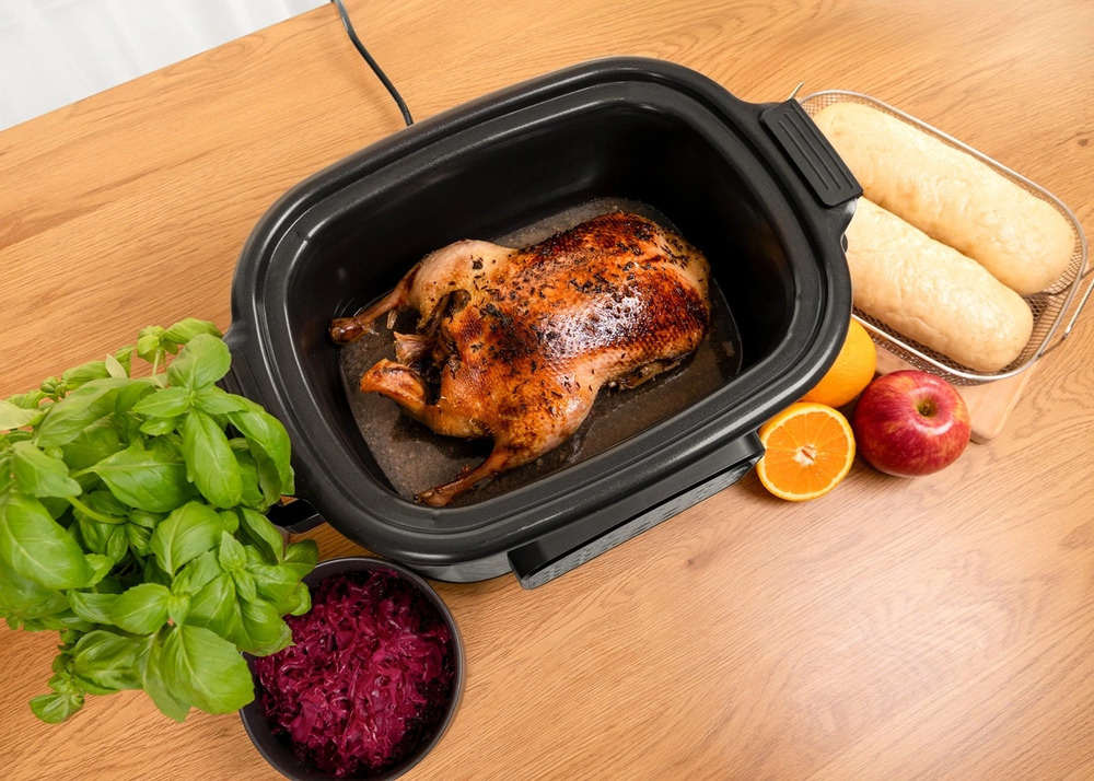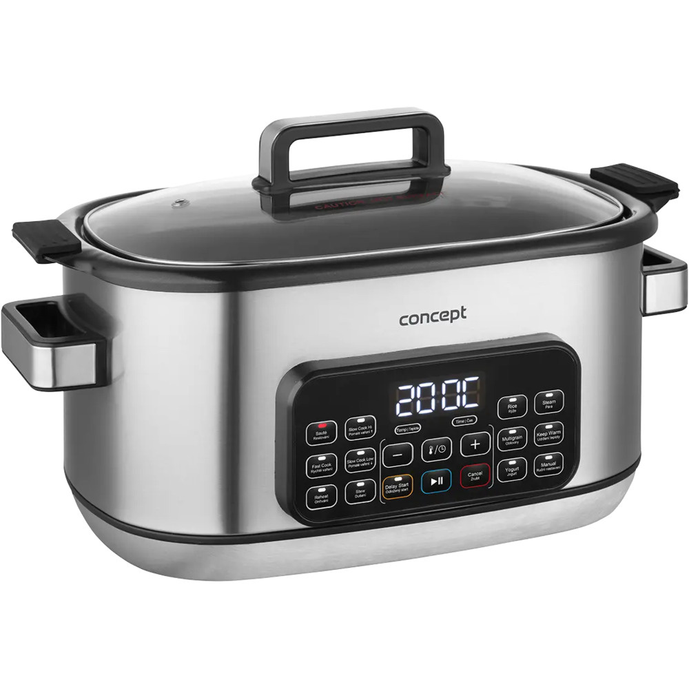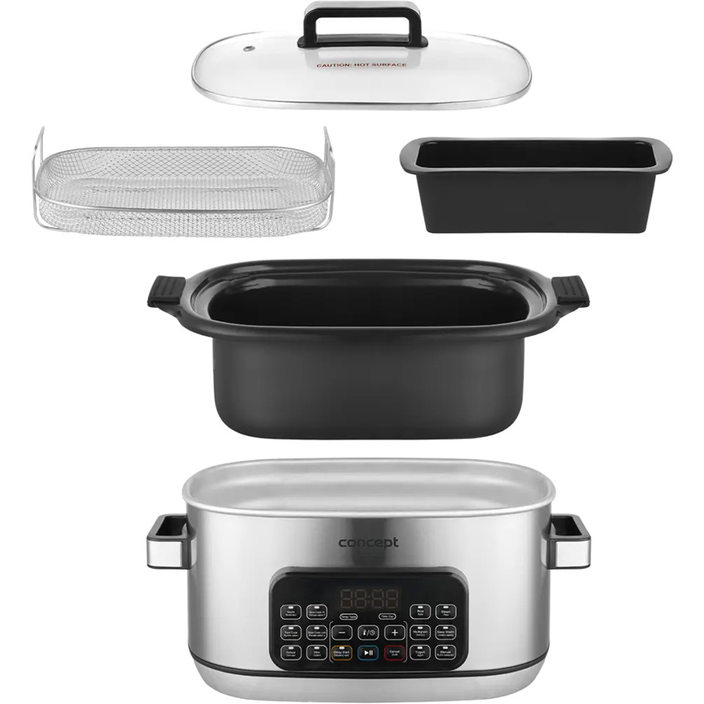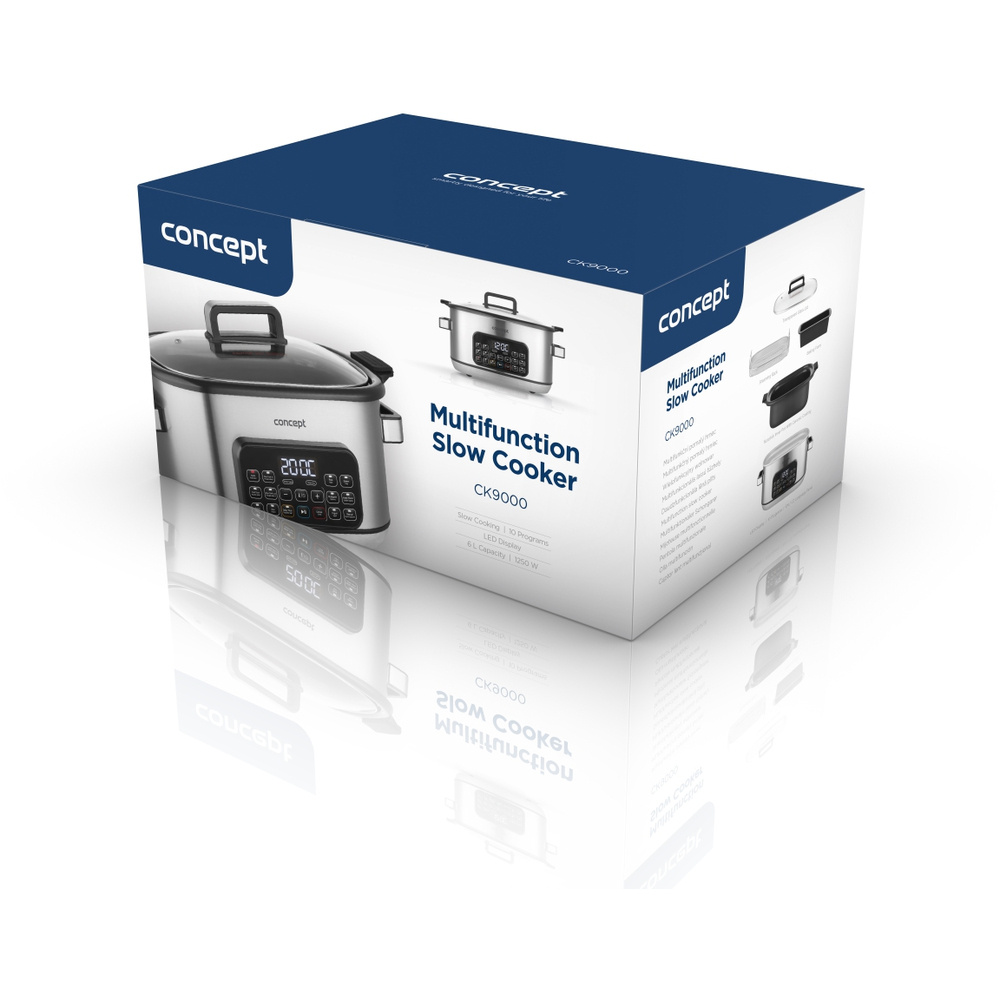 Wielofunkcyjny wolnowar Concept CK9000 to praktyczny pomocnik, który oszczędza czas, energię i miejsce na kuchennym blacie. Oferuje 10 automatycznych programów, w tym powolne gotowanie i gotowanie na parze, dzięki czemu z łatwością poradzi sobie z szeroką gamą potraw. Pokrywa z hartowanego szkła pozwala wygodnie kontrolować gotowanie bez konieczności jej otwierania. Kompaktowy rozmiar sprawia, że kuchenka jest łatwa do przenoszenia - idealna do domków letniskowych lub na wakacje. W zestawie znajduje się mini-książka kucharska z przepisami ułatwiającymi rozpoczęcie gotowania.