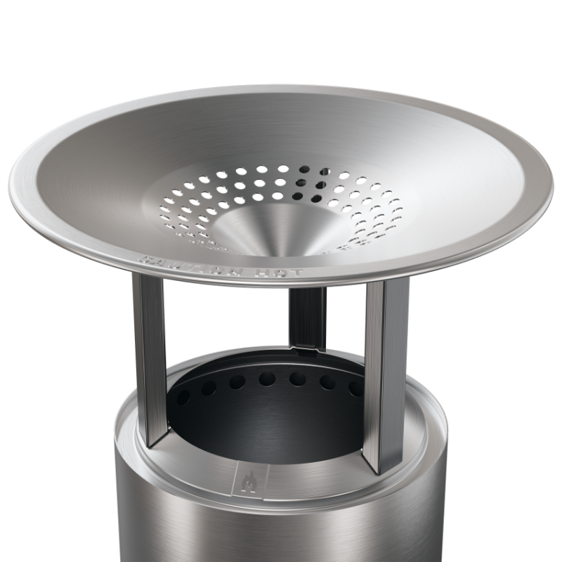 Deflektor ciepła do kominka bezdymnego Solo Stove Mesa dla wygodniejszego siedzenia wokół kominka. Oryginalnie ukształtowany stożek z dyskiem ze stali nierdzewnej skutecznie rozprowadza ciepło z modelu Mesa do 60 cm od ognia. Deflektor można umieścić na nóżkach lub bezpośrednio na kominku. Deflektor wykonany jest ze stali nierdzewnej, dzięki czemu będzie służył przez wiele lat. Można go łatwo umieścić na kominku bez konieczności użycia dodatkowych narzędzi.