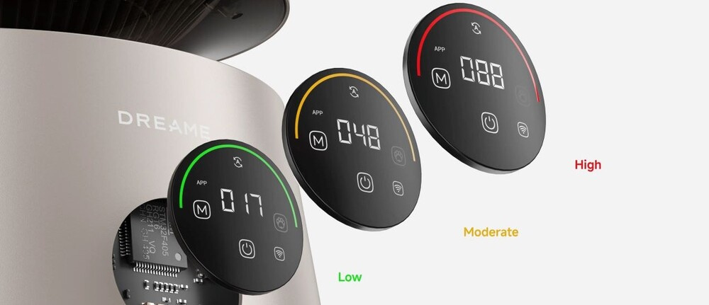 Dreame AP10 to inteligentny oczyszczacz powietrza zaprojektowany specjalnie dla właścicieli zwierząt domowych i alergików. Dzięki wysokiej wydajności CADR wynoszącej 430 m³/h dla cząstek kurzu i 200 m³/h dla formaldehydu, może skutecznie usuwać kurz, sierść i inne zanieczyszczenia z powietrza w ciągu kilku minut. Technologia wysokiego podciśnienia w połączeniu z systemem cyrkulacji 360° zapewnia skuteczne pochłanianie zanieczyszczeń z każdego zakątka pomieszczenia.