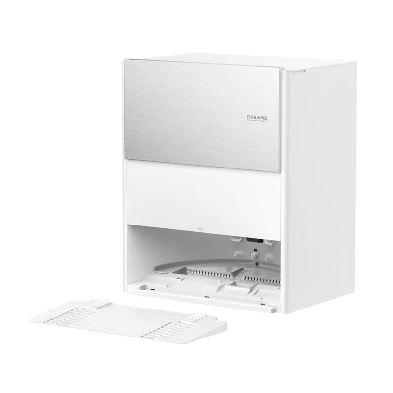 Stacja dokująca PowerDock robota odkurzającego Dreame Aqua10 Roller zapewnia pełną automatyzację konserwacji. Po zakończeniu czyszczenia wykorzystuje technologię ThermoHub z gorącą wodą o temperaturze do 100°C, aby dokładnie wyczyścić mop rolkowy, który obraca się w przód iw tył w podstawie, usuwając trudne plamy i neutralizując zapachy. Następnie mop jest suszony gorącym powietrzem o temperaturze 65°C, co skutecznie zapobiega powstawaniu pleśni i nieprzyjemnych zapachów. Stacja jest wyposażona w automatyczny system uzupełniania roztworu czyszczącego, który dozuje dokładnie odpowiednią ilość roztworu czyszczącego i miesza go z wodą, utrzymując higienę mopa bez żadnego wysiłku. W zestawie znajduje się również automatyczny system uzupełniania wody w zbiorniku robota. Dzięki workowi na kurz o pojemności 3,2 litra można cieszyć się nawet 100 dniami bez konieczności jego opróżniania, co oznacza ponad trzy miesiące bezproblemowego sprzątania. Zbiorniki na czystą i zużytą wodę mają pojemność odpowiednio 4 litry i 3,5 litra, zapewniając wystarczającą pojemność dla większych gospodarstw domowych.