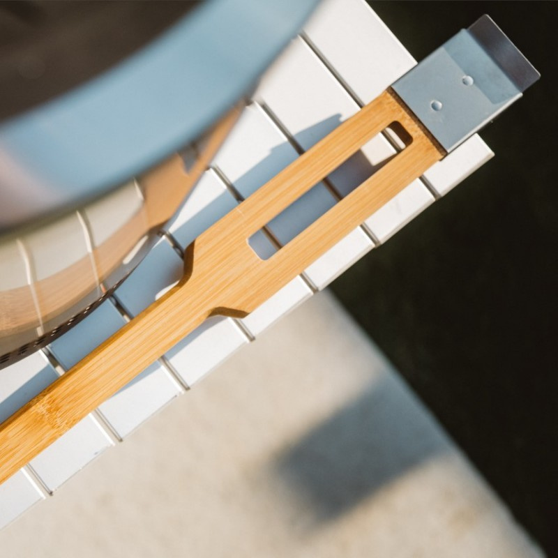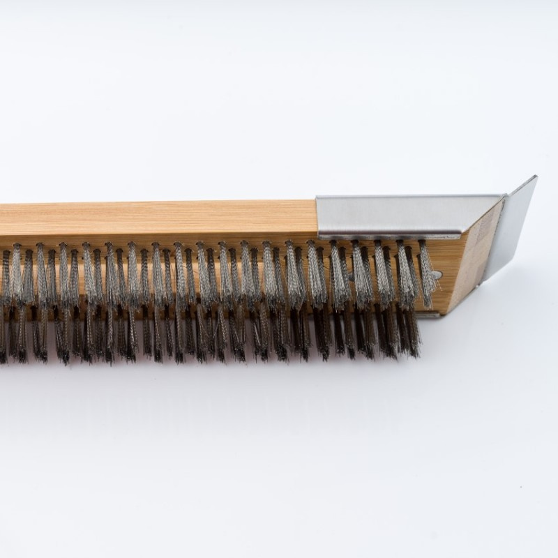 Szczotka ze stali nierdzewnej Solo Stove do doskonałej konserwacji ceramicznych kamieni do pizzy. Skutecznie usuwa przypalone resztki jedzenia. Skrobak ze stali nierdzewnej po drugiej stronie szczotki jest idealny do usuwania większych przypalonych resztek. Długi drewniany uchwyt wygodnie leży w dłoni. Praktyczny pasek do zawieszania.
