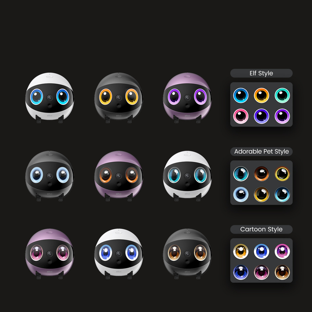 Dwa wyświetlacze cyfrowe zastąpienie oczu nadaje EBO Air 2 Plus osobowość i emocje. Użytkownicy mogą dostosować kolor, styl i animacjaaby dostosować wygląd robota do nastroju lub otoczenia użytkownika. Oczy reagują na różne sytuacje - na przykład podczas rozmowy, ładowania lub ruchu - tworząc żywe, przyjazne wrażenie.