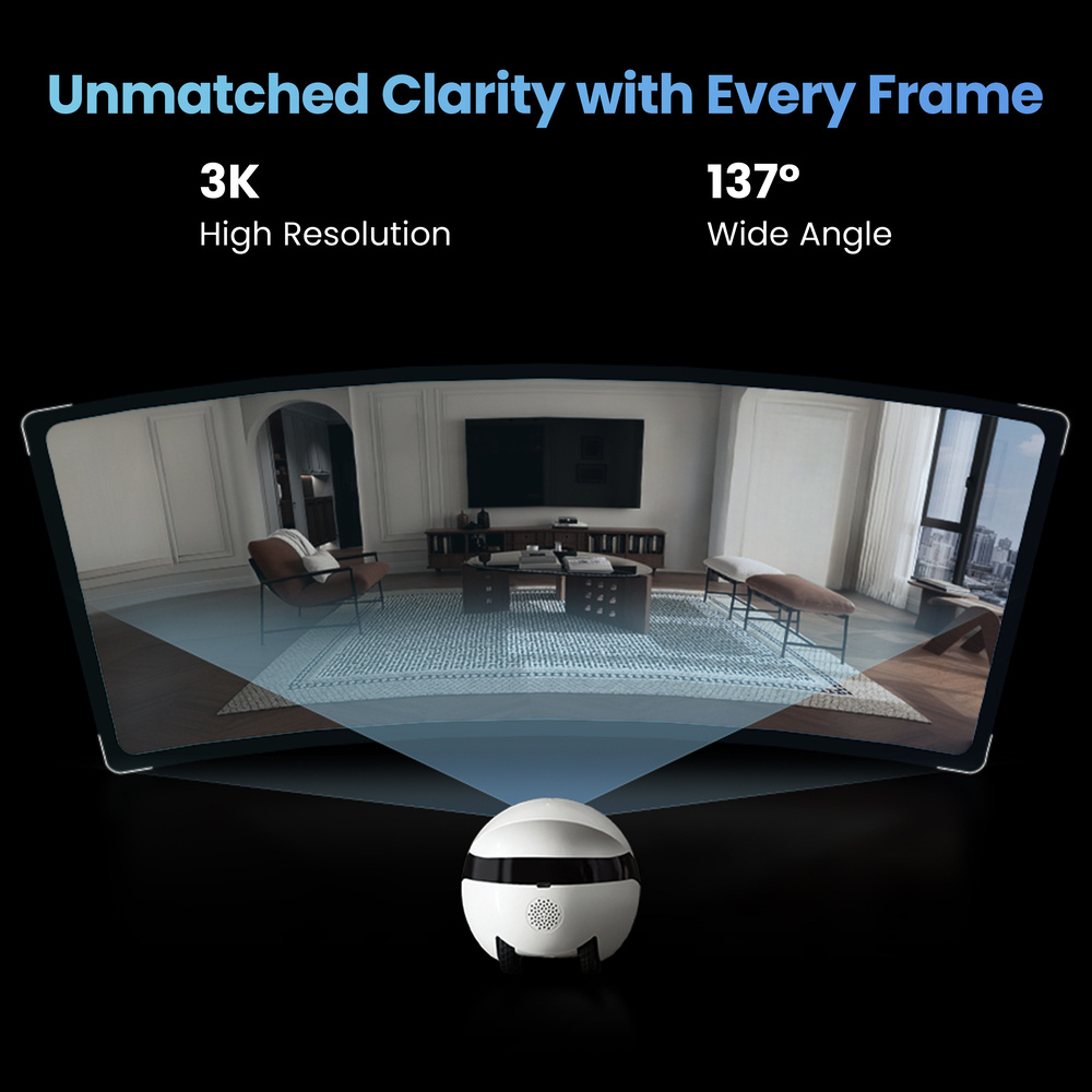 Wbudowany kamera 3K z rozdzielczością 2880 x 1620 zapewnia wyjątkowo szczegółowy obraz, który rejestruje wszystko, od subtelnych ruchów po mimikę twarzy. Szerokokątny obiektyw 137 gwarantuje, że nic nie umknie z pola widzenia, nawet jeśli oglądasz większe pomieszczenie. Inteligentne śledzenie AI może wykrywać ruch, automatycznie ustawiać ostrość i nagrywać wideo lub zdjęcia. W połączeniu z płynnym ruchem kamery, EBO Air 2 Plus oferuje zupełnie nowy standard w monitorowaniu domu. Każde wideo (w MP4) i zdjęcia (JPG) są wyraźne, realistyczne i idealne do natychmiastowej transmisji lub późniejszego odtwarzania na wbudowanym odtwarzaczu karta microSD 32 GBktóry może zostać rozszerzony do 256 GB.