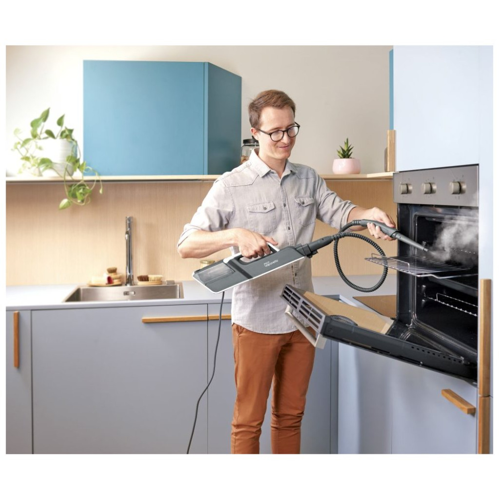 Dzięki podwójnej konstrukcji Polti Vaporetto SV610 Style jest przeznaczony do 15 różnych powierzchni: podłóg laminowanych i drewnianych, parkietów, marmuru, dywanów, płyt grzewczych, fug, okien, luster, powierzchni tapicerowanych (sof, foteli, poduszek i materacy), drzwi, szafek, ogrzewania, zasłon, płytek łazienkowych i innych, takich jak podłogi winylowe, podłogi PCV, podłogi korkowe oraz płytki terakotowe lub kamienne. Niezależnie od tego, jaka powierzchnia zdobi Twój dom, znów będzie lśnić czystością.