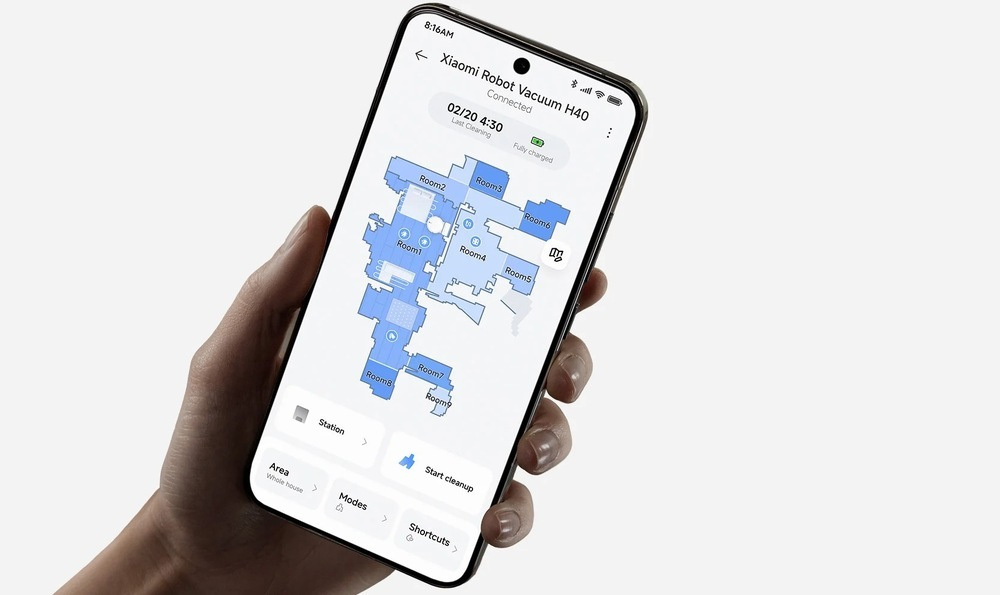 Xiaomi Robot Vacuum H40 łączy funkcje odkurzania i wycierania w jednym urządzeniu. Dzięki kompaktowym wymiarom 340 × 340 × 97 mm i eleganckiej konstrukcji z łatwością zmieści się w każdym domu. Stacja ładująco-czyszcząca o wymiarach 340 × 160 × 326 mm dba o praktyczne przechowywanie i konserwację. Całkowita waga robota wynosi 3,64 kg.