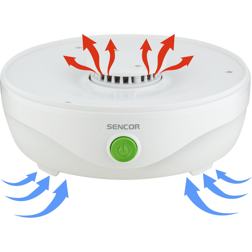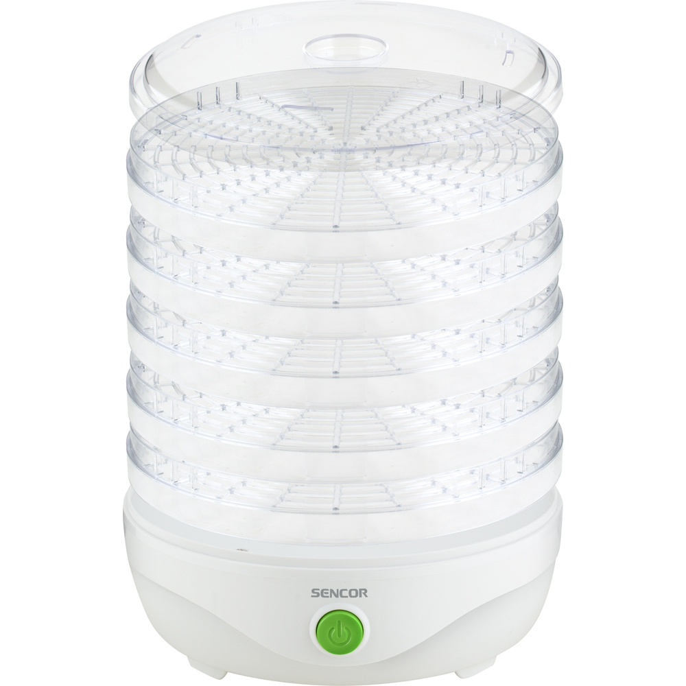 Model SENCOR SFD 750WH oferuje pięć praktycznych wynagrodzeń ze średnią 23 cm i regulowana wysokość 2,5 cm. Specjalna konstrukcja kratki płyty optymalizuje przepływ powietrza i zapobiega powstawaniu pleśni. Wbudowany wentylator zapewnia optymalną cyrkulację gorącego powietrza w górę i na boki, umożliwiając równomierne suszenie wszystkich składników.