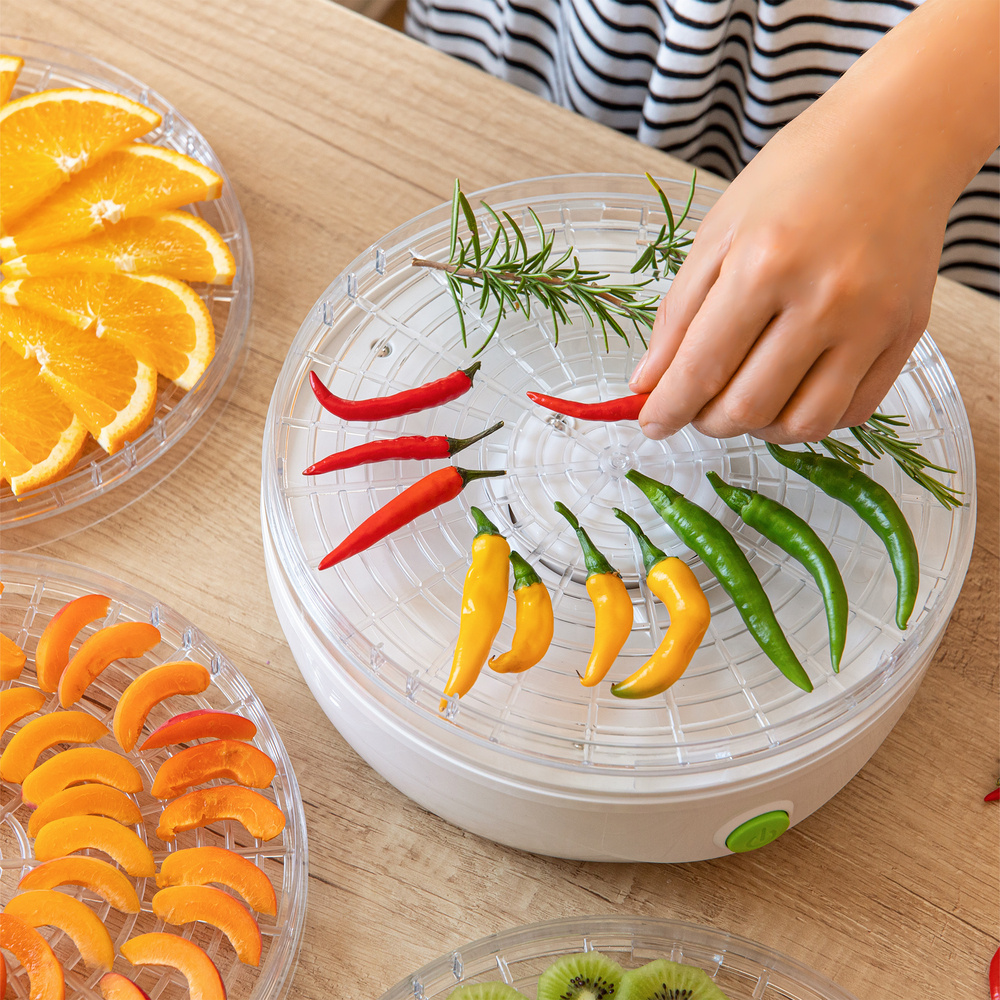 Suszarka radzi sobie z szeroką gamą produktów spożywczych - od owoców (warzywa krzyżowe, śliwki, morele), przez warzywa, grzyby i zioła, po przygotowywanie suszonego mięsa i ryb. Nadaje się również do suszenia pestek dyni lub przygotowywania mieszanek zapachowych z płatków kwiatów. Przezroczysta konstrukcja półmiska i pokrywy umożliwia ciągłą kontrolę procesu suszenia bez konieczności obsługi.
