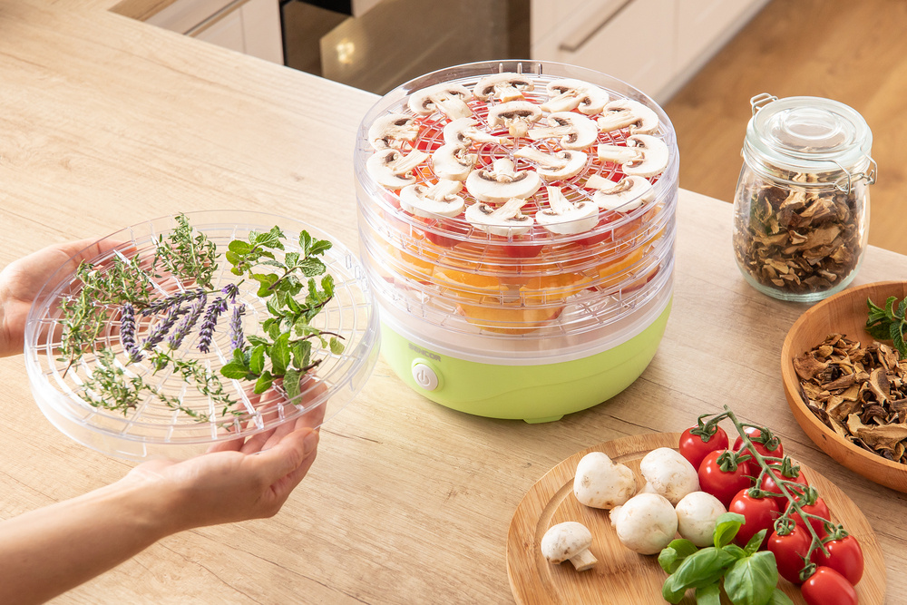 Suszarka może obsługiwać szeroką gamę produktów spożywczych - od owoców (warzywa krzyżowe, śliwki, morele) przez warzywa i grzyby po zioła, mięso i ryby. Nadaje się również do przygotowywania domowych mieszanek herbat lub suszenia płatków do mieszanek zapachowych. Aby uzyskać najlepsze rezultaty, zalecamy stosowanie świeżych, wysokiej jakości i odpowiednio umytych składników, które są suszone bez dodatku konserwantów i barwników.