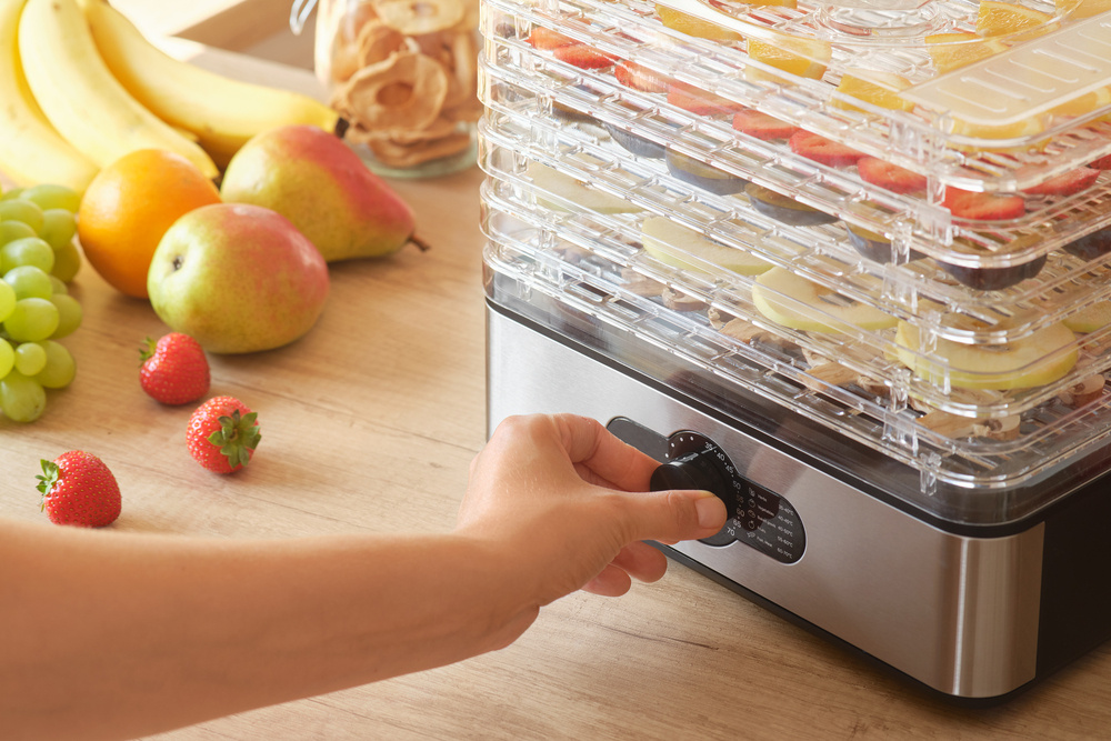 Suszarka oferuje 8 poziomów ustawień temperatury w zakresie 35-70°C dla optymalnego dostosowania różnych rodzajów surowców. Może obsługiwać szeroką gamę produktów spożywczych - od owoców, warzyw i grzybów po zioła, przyprawy, mięso, ryby lub przygotowywanie domowych mieszanek herbat. Przezroczysta pokrywa i płyty umożliwiają łatwą kontrolę procesu suszenia bez konieczności obsługi.