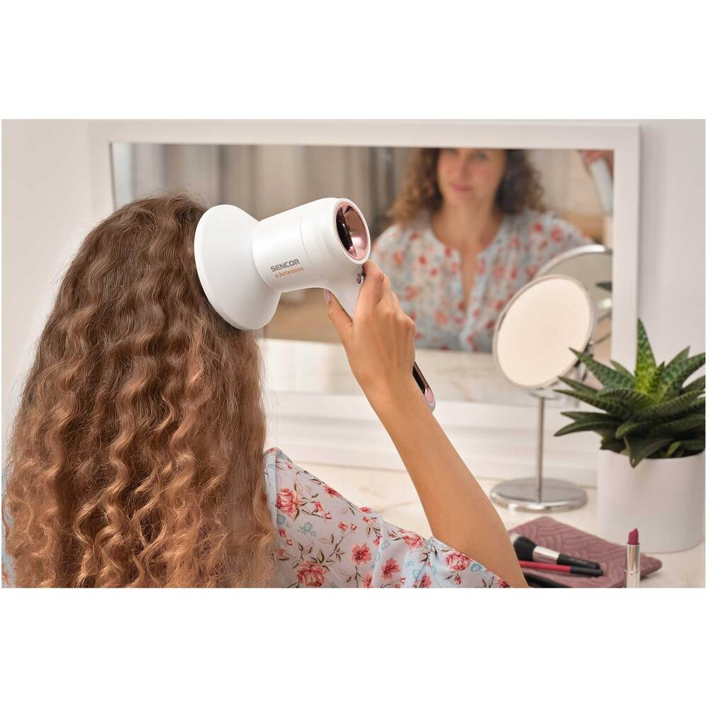 Włosy są uważane za koronę piękna i dlatego zasługują na najlepszą pielęgnację. Odpowiedni wybór suszarki do włosów odgrywa ważną rolę w uzyskanej stylizacji. Designerska suszarka do włosów Sencor SHD 9150RS Artemiss jest wyposażona w rewolucyjny, wysokoobrotowy silnik cyfrowy BLDC, który zapewnia dłuższą żywotność i większą wydajność. Ponadto silna jonizacja nadaje włosom miękkość, odżywienie i nieodparty połysk.