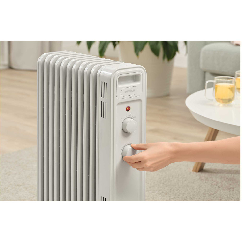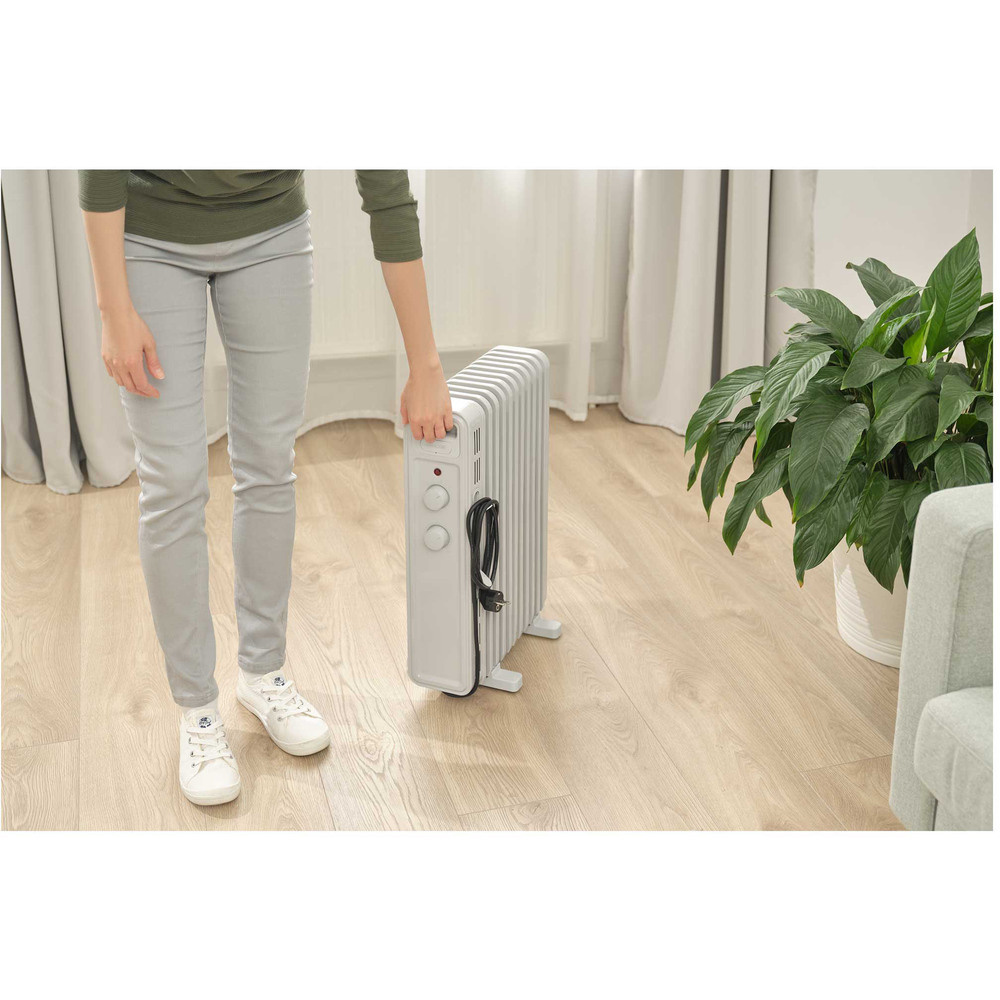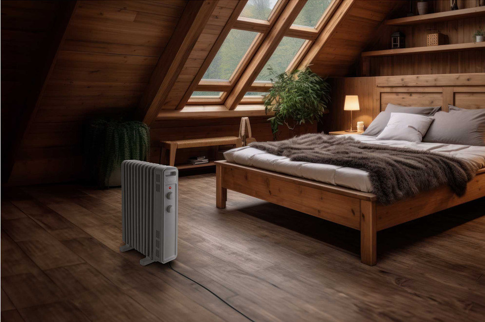 Innowacyjny elektryczny grzejnik olejowy to najlepsze rozwiązanie do ogrzewania różnych pomieszczeń, od domków letniskowych po biura i sypialnie. Urządzenie posiada następujące funkcje jedenaście elementów grzejnych FLAT SHAPEktóre zostały zaprojektowane z myślą o maksymalnej wydajności grzewczej i bezpieczeństwie. Dzięki trzem poziomom mocy (1000 W, 1300 W i 2300 W) w połączeniu z bezstopniowo regulowanym termostatem można ustawić dokładnie żądaną temperaturę. Sterowanie odbywa się za pomocą dwóch intuicyjnych pokręteł na panelu przednim, gdzie górne służy do ustawiania poziomu mocy, a dolne do regulacji termostatu.