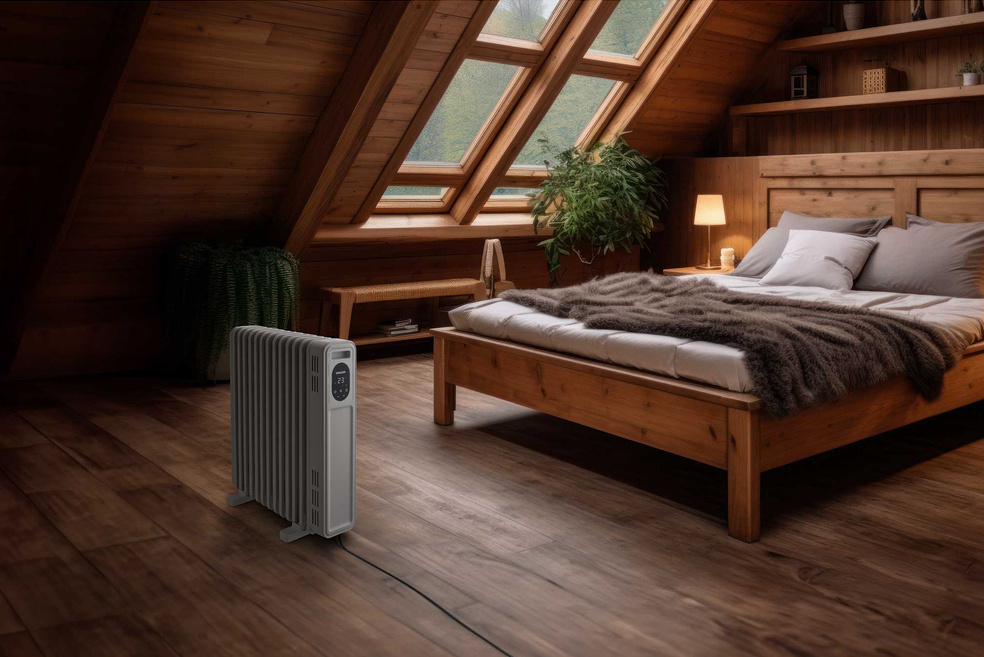 Innowacyjny cyfrowa chłodnica oleju to rewolucyjne rozwiązanie do ogrzewania pomieszczeń o powierzchni 21-29 m². Sercem urządzenia jest zaawansowany system 13 elementów grzejnych FLAT SHAPEco zapewnia niezwykle szybkie i wydajne rozpraszanie ciepła. Dzięki specjalnej konstrukcji z rozszerzoną powierzchnią grzewczą, grzejnik może błyskawicznie ogrzać otaczający go obszar. Wyjątkowa pojemność ogniw wypełnionych olejem gwarantuje długotrwałe utrzymywanie ciepła nawet po wyłączeniu urządzenia. Maksymalna moc wejściowa 2 500 W i trzy tryby pracy (niski, wysoki i ECO) zapewniają pełną kontrolę nad ogrzewaniem pomieszczenia.