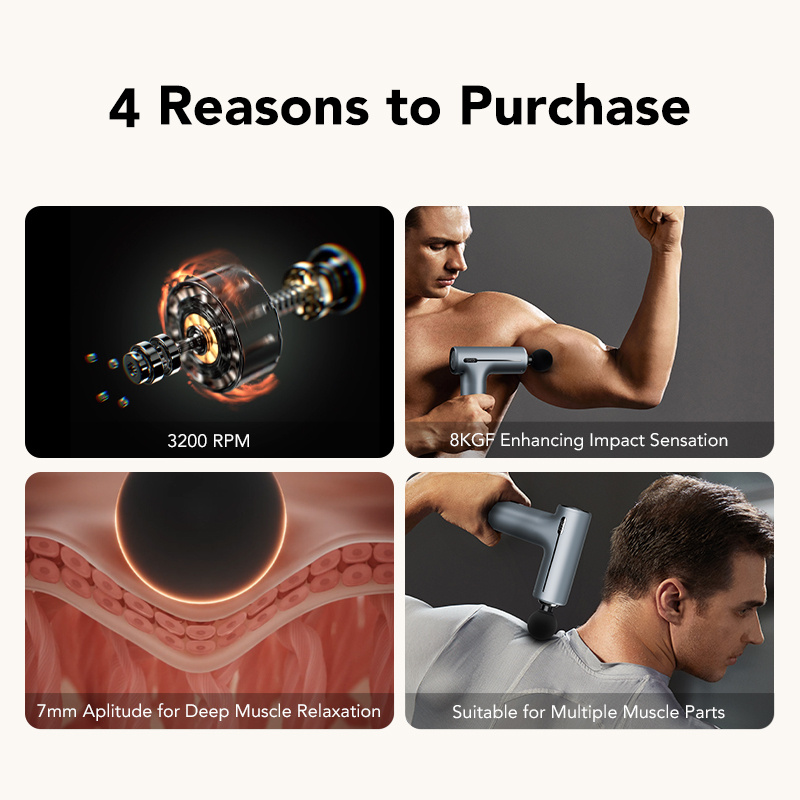 Pistolet do masażu SKG F1 PRO to idealne narzędzie dla sportowców i wszystkich osób cierpiących na sztywność mięśni. Dzięki mocnemu silnikowi o prędkości do 3200 obrotów na minutę i sile uderzenia 8 kilogramów zapewnia potężną terapię udarową, która pomaga rozluźnić mięśnie, poprawić krążenie i przyspieszyć regenerację po aktywności fizycznej. Głębokość uderzeń wynosząca 7 milimetrów pozwala dotrzeć do głębokich warstw mięśni i skutecznie wspomaga ich regenerację. Urządzenie oferuje 6 regulowanych poziomów prędkości - niższe ustawienia (poziom 1) idealne do delikatnego relaksu w pracy, średnie poziomy (2-3) do uspokojenia się w domu przed telewizorem, poziom 4 do głębokiej regeneracji, aby pomóc złagodzić bóle mięśni po treningu i intensywne poziomy (5-6) do intensywnego relaksu, aby pomóc zasnąć po długim i stresującym dniu. Potężna technologia perkusyjna wnika głęboko w tkankę mięśniową, aby skutecznie uwolnić sztywność, napięcie i ucisk.