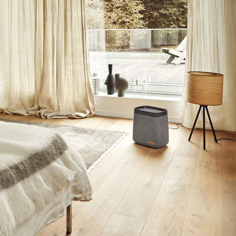 Bardzo wydajny nawilżacz Karl dostaje się do powietrza do 690 g wody na godzinę. Z łatwością radzi sobie z suchym powietrzem w pomieszczeniu do 100 m2. Jednak jego wysokie obciążenie pracą jest niezauważalne dla zmysłów. Twoje oczy nie zobaczą naturalnie odparowanej pary wodnej, a twoje uszy będą zachwycone niski poziom hałasu.
