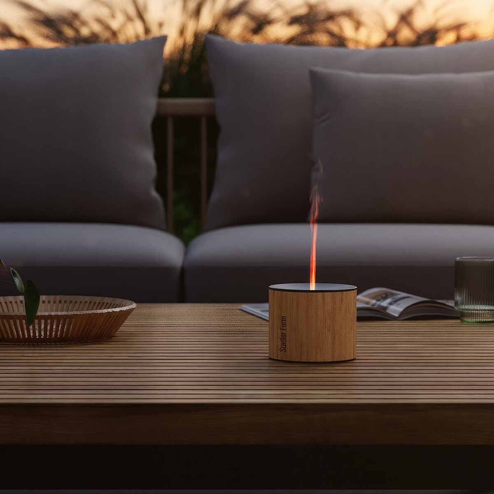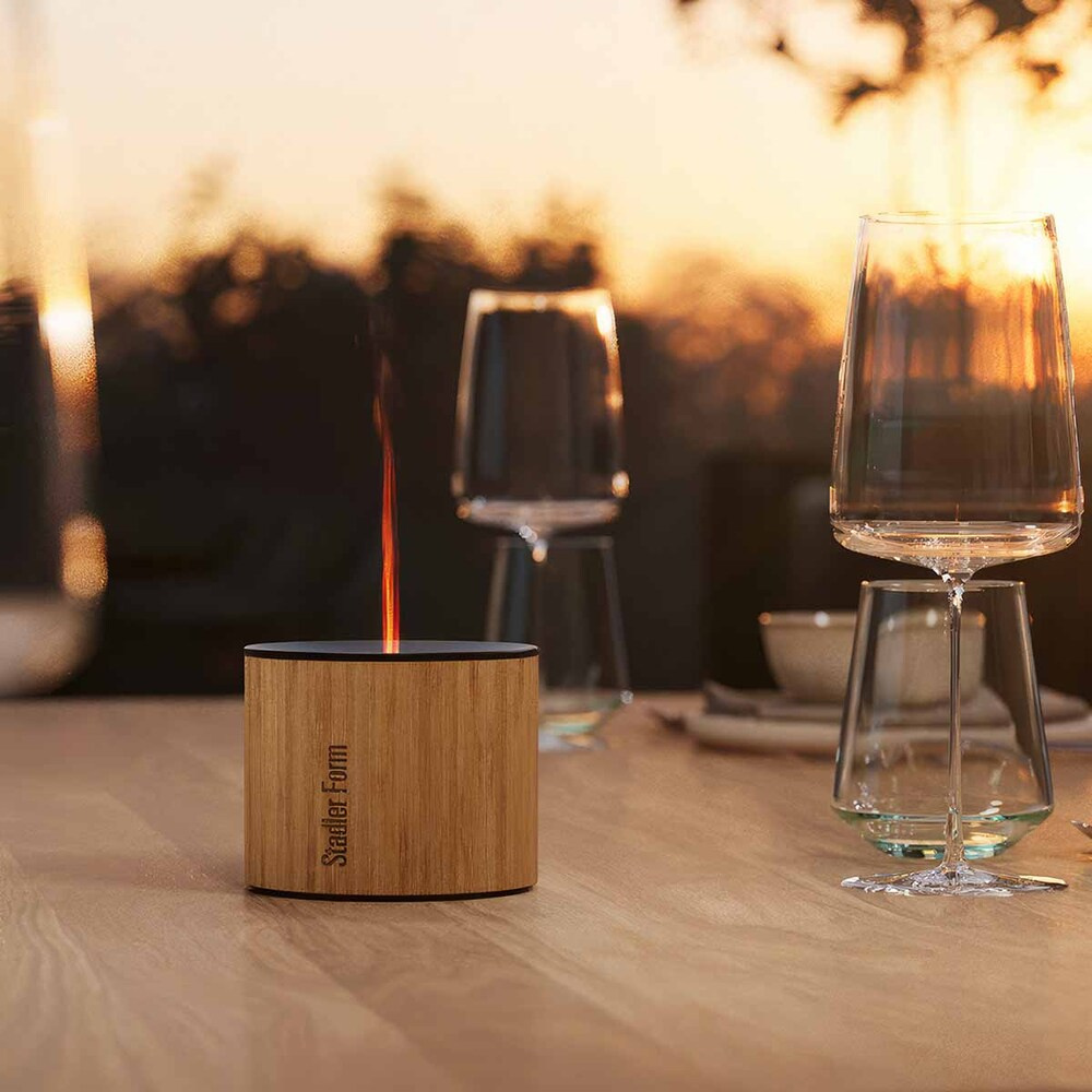 Dyfuzor zapachowy Nora to zaprojektowany do użytku zewnętrznego i wewnętrznego. Tańczący płomień amber Light™ wprowadzi niepowtarzalną atmosferę do Twojego salonu, ogrodu lub balkonu.