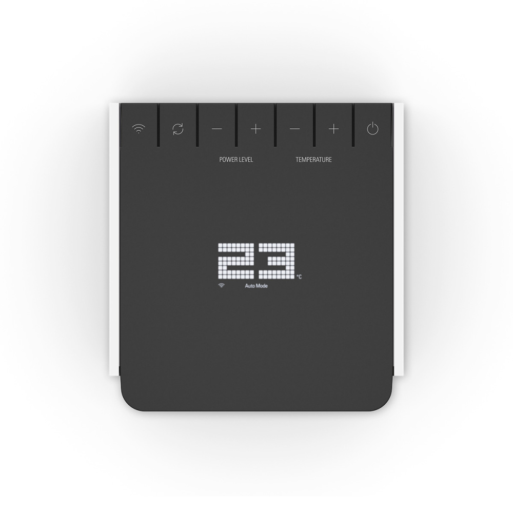 Elegancki wyświetlacz cyfrowy pokazuje bieżąca temperatura powietrza w pomieszczeniu, a czerwona dioda LED w dolnej części panelu przedniego wskazuje, że grzejnik działa. V tryb automatyczny ustawić żądaną temperaturę lub wybrać jedną z następujących opcji 4 poziomy mocy ogrzewanie.